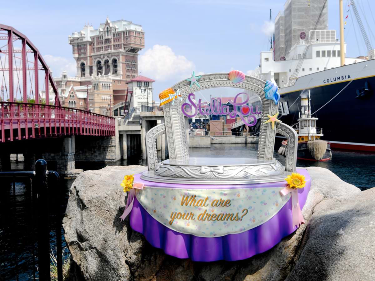 「ステラ・ルー」が夢見るステージをイメージしたフォトスポットは、貝殻や麦わら帽子など夏らしいモチーフで飾り付けされています☆