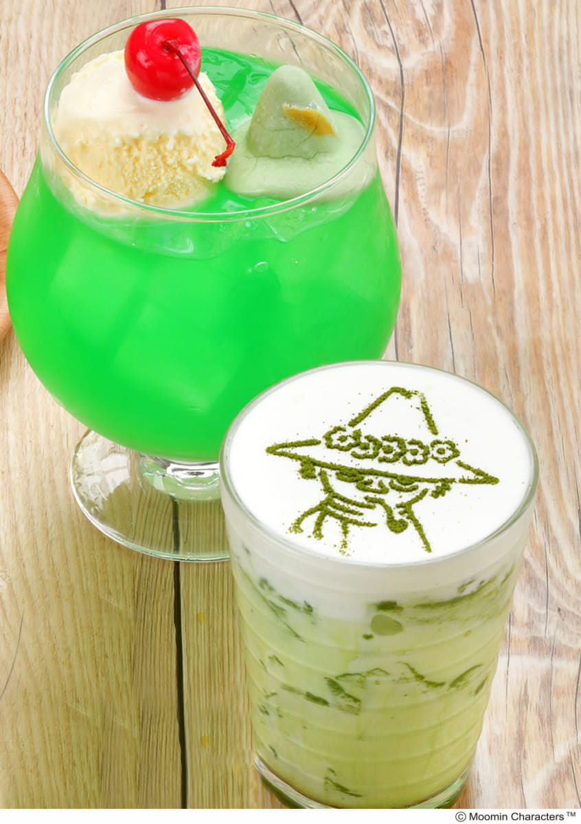 スナフキンがテーマのドリンクメニューは2種、どちらもスナフキンらしいグリーンです。
