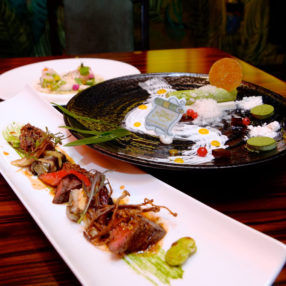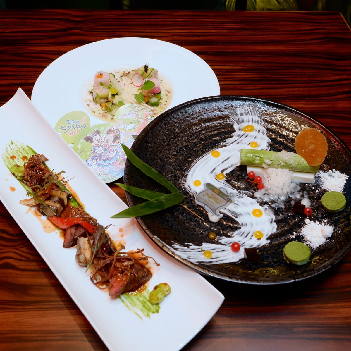ディナー時間帯に提供される「“ディズニー七夕デイズ2019”スタイリッシュカンナ」では、七夕の雰囲気あふれるコース料理をいただくことができます。