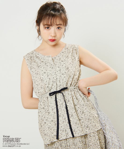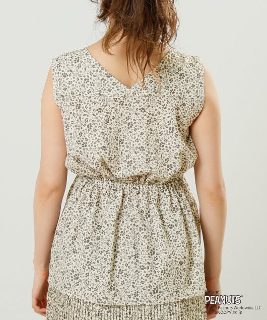 「スヌーピー」と花柄のような足跡プリントがMIXされた、とってもキュートなオリジナルブラウス。