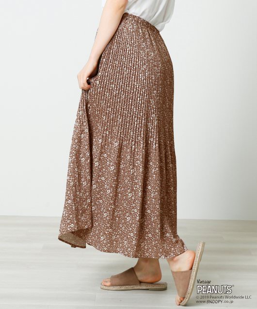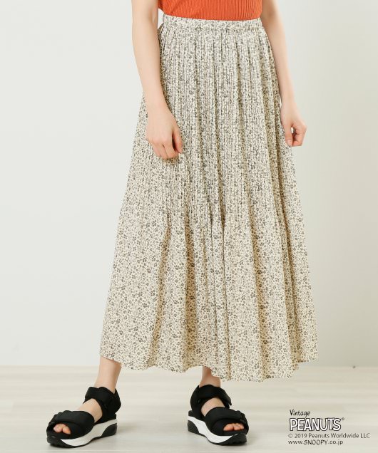 「Ray Cassin」で人気の花柄プリントと「スヌーピー」がMIXされたオリジナル柄がとってもキュートなプリーツスカート。
