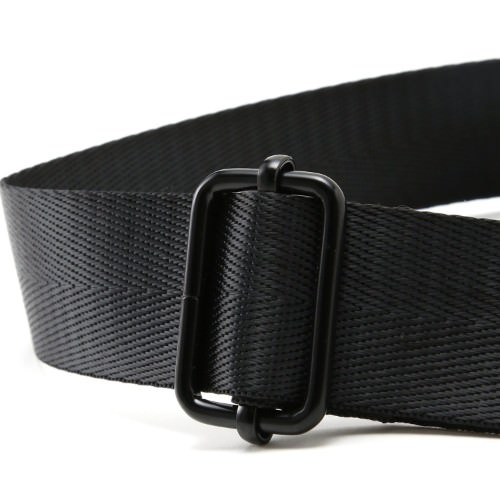 どのようなバッグにも合わせやすいブラックのストラップ。