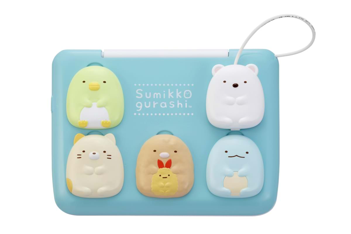 さらに、パソコンの外側のカバーに付いている「すみっコぐらし」の5大キャラクターを、マウスカバーとして付け替えて遊ぶことができ、カバーを着せ替えることで、液晶画面に登場するキャラクターも変化するというお楽しみも。