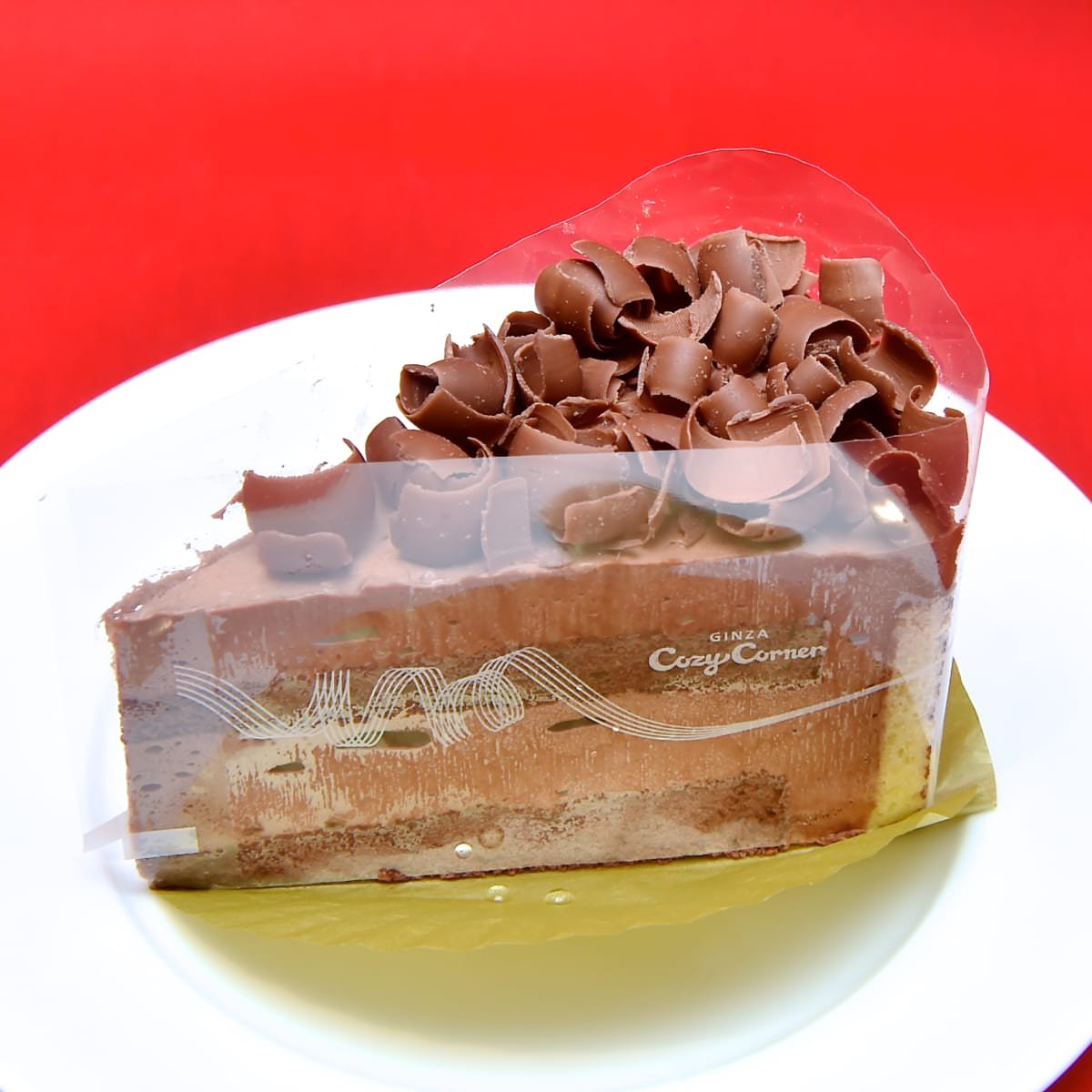 程よい酸味と甘さのチョコレートを使ったチョコムースと、口どけのよいココアスポンジを重ねたケーキ。