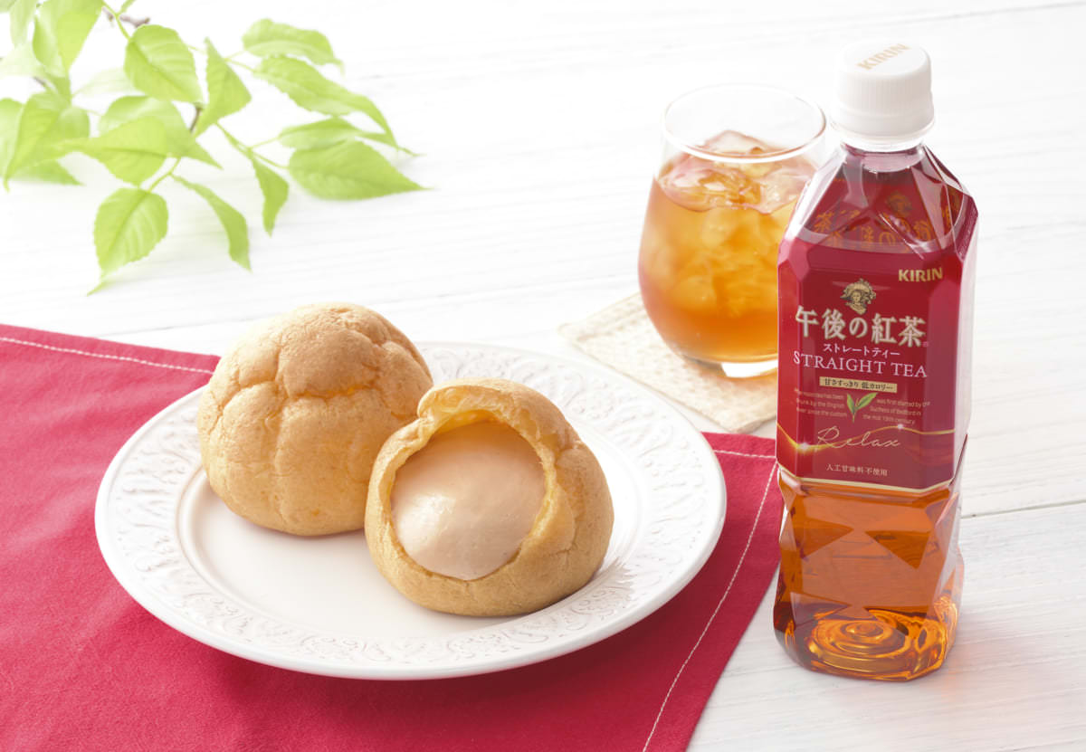 華やかな紅茶の味わいの「ジャンボシュークリーム(午後の紅茶ストレートティー)」が共同開発されました。