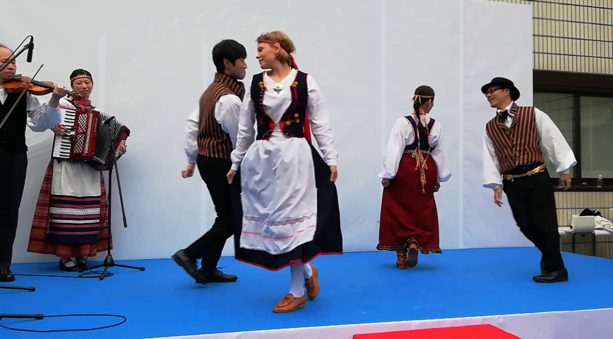 大定番の伝統的な音楽に合わせて、みんなでミッドサマーダンスを楽しめます。