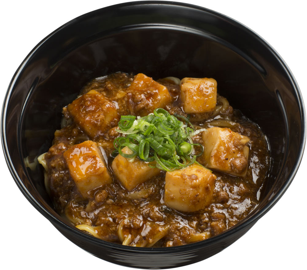 辛さと旨味にこだわったとろとろの本格麻婆豆腐が、ツルッとした麺に絡む「すし屋のマーボーまぜそば」