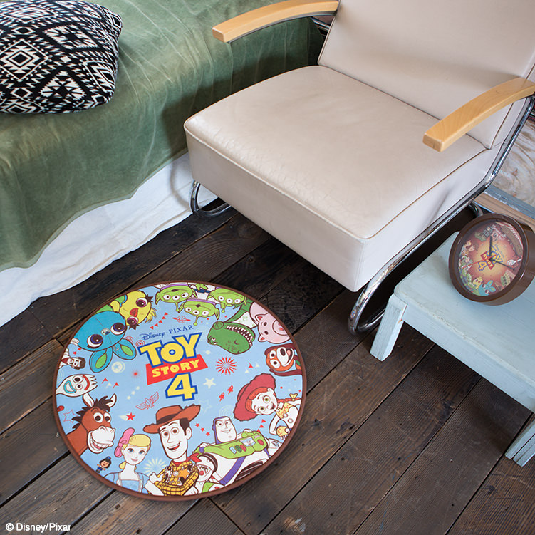 『トイ・ストーリー4』のキャラクター達が大集合したデザインの丸型「ラグマット」がC賞にラインナップ。