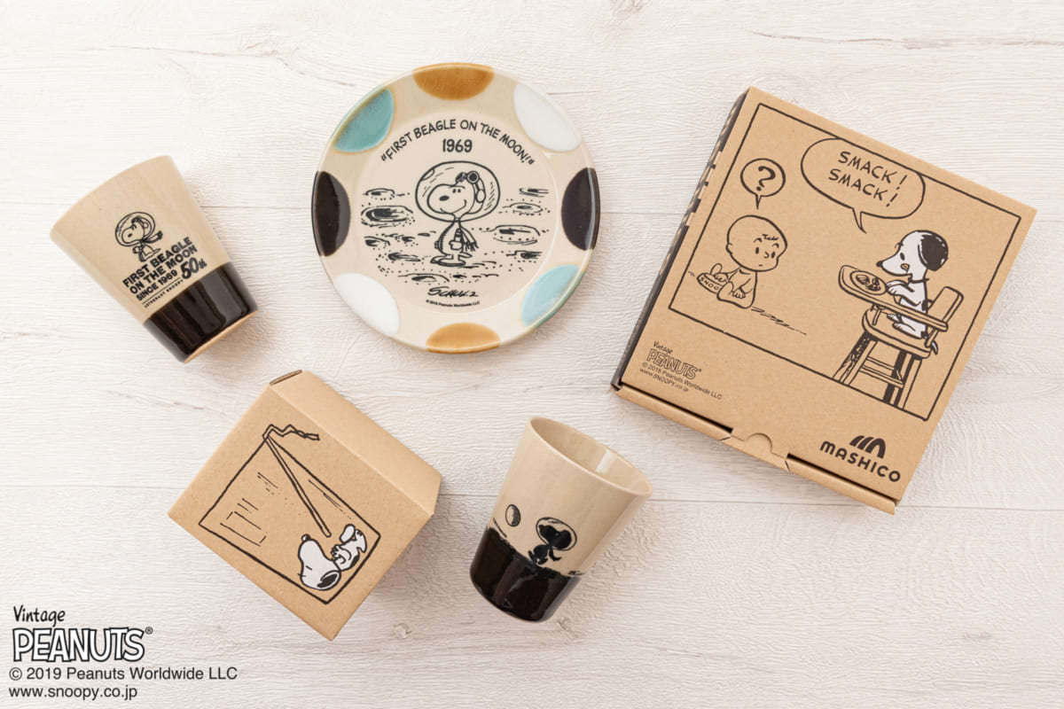これを記念して、ガラス製食器ブランド Fire-King(ファイヤーキング)、レザーブランド OJAGA DESIGN(オジャガデザイン)、益子焼陶器ブランド MASHICO(マシコ)の各種ブランドから、「ASTRONAUT SNOOPY 50th アニバーサリー」テーブルウェアグッズが登場します。