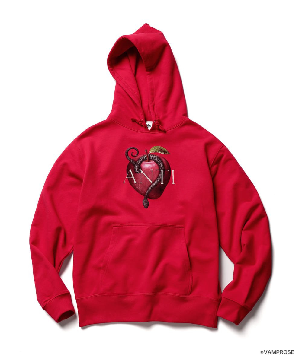 フロント中央に「ANTI」のメインビジュアルを採用したプルオーバーパーカー。