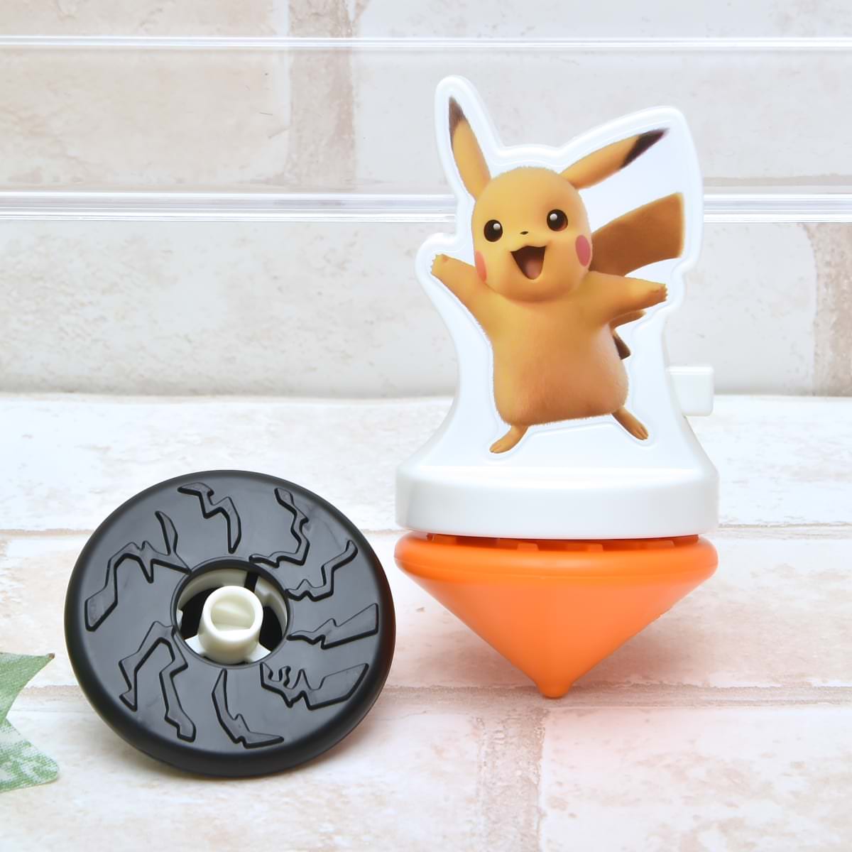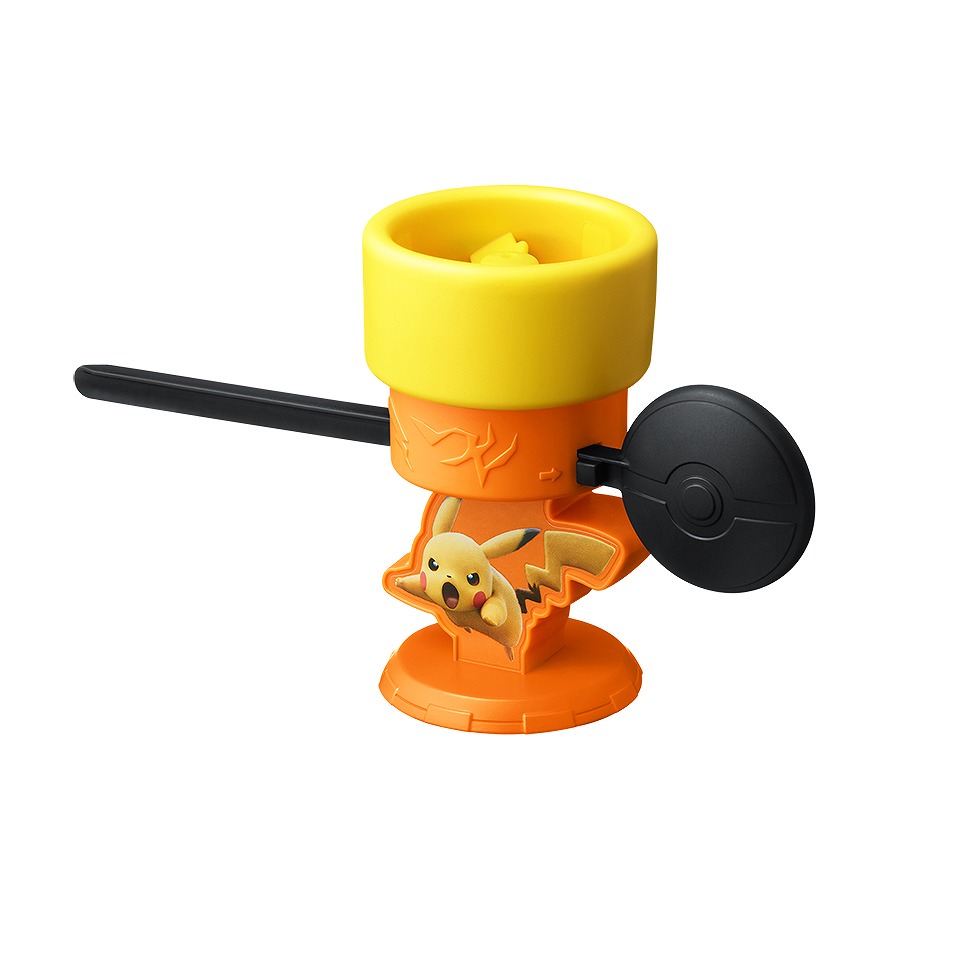 オレンジ色のピカチュウコプターから⻩色いローラーを的(まと)に向かって発射するおもちゃ。