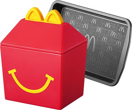 ハッピーセットのボックスをかたどったおもちゃとトレイのセット。
