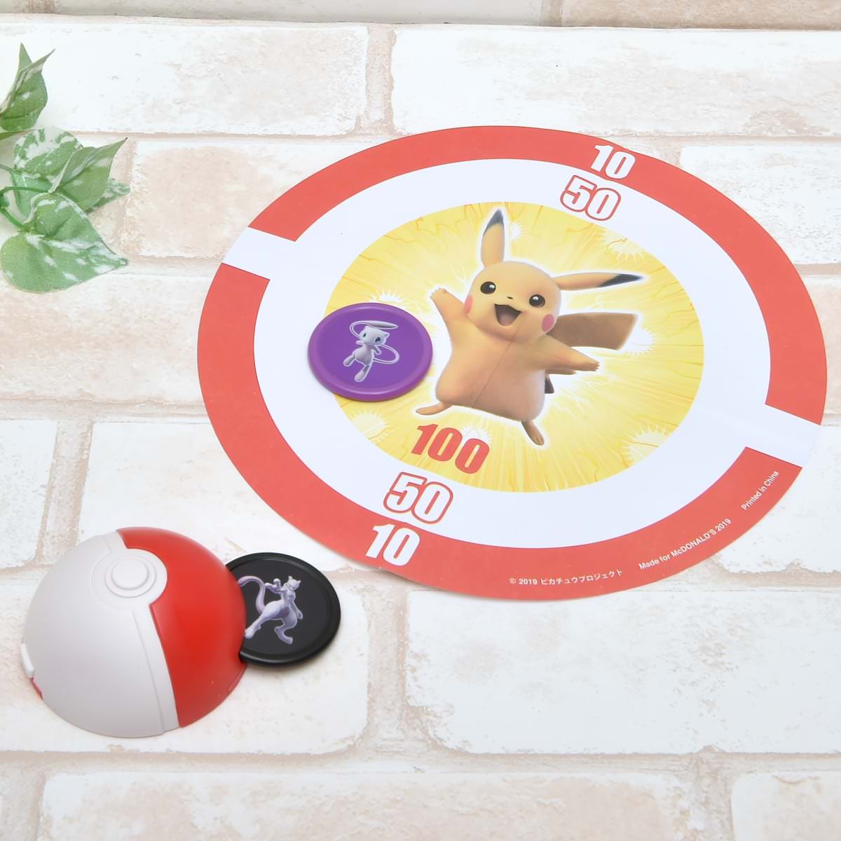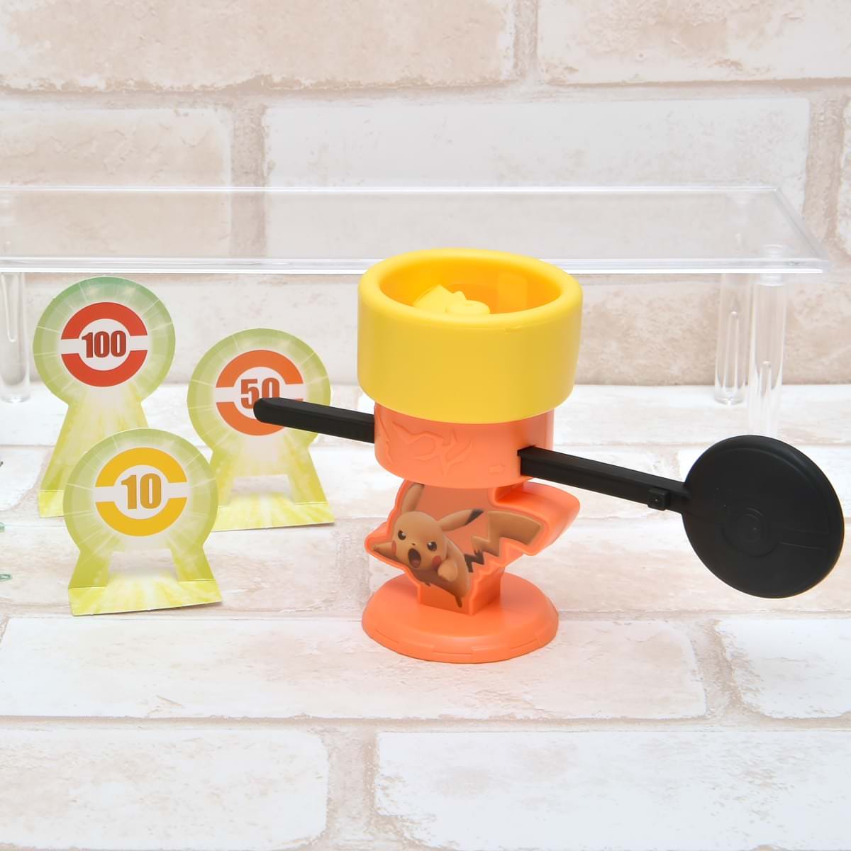ピカチュウが描かれた的(まと)に向けて、モンスターボールからディスクを発射するおもちゃ。