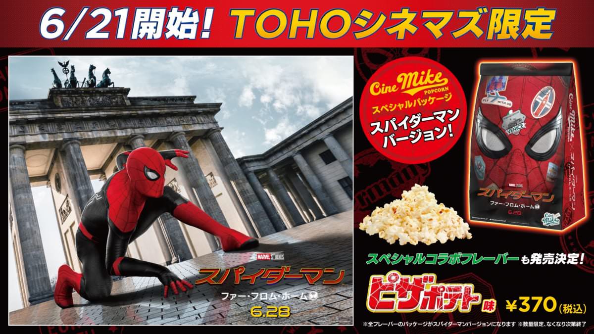 今回『スパイダーマン:ファー・フロム・ホーム』の公開を記念し、TOHOシネマズにて販売されている“シネマイクポップコーン”の全フレーバーのパッケージが2019年6月21日(金)より「スパイダーマン」ビジュアル仕様で登場!