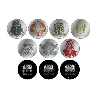 「スター・ウォーズ」作品に登場する人気キャラクターたちがプリントされた「トレーディングピンバックボタン」