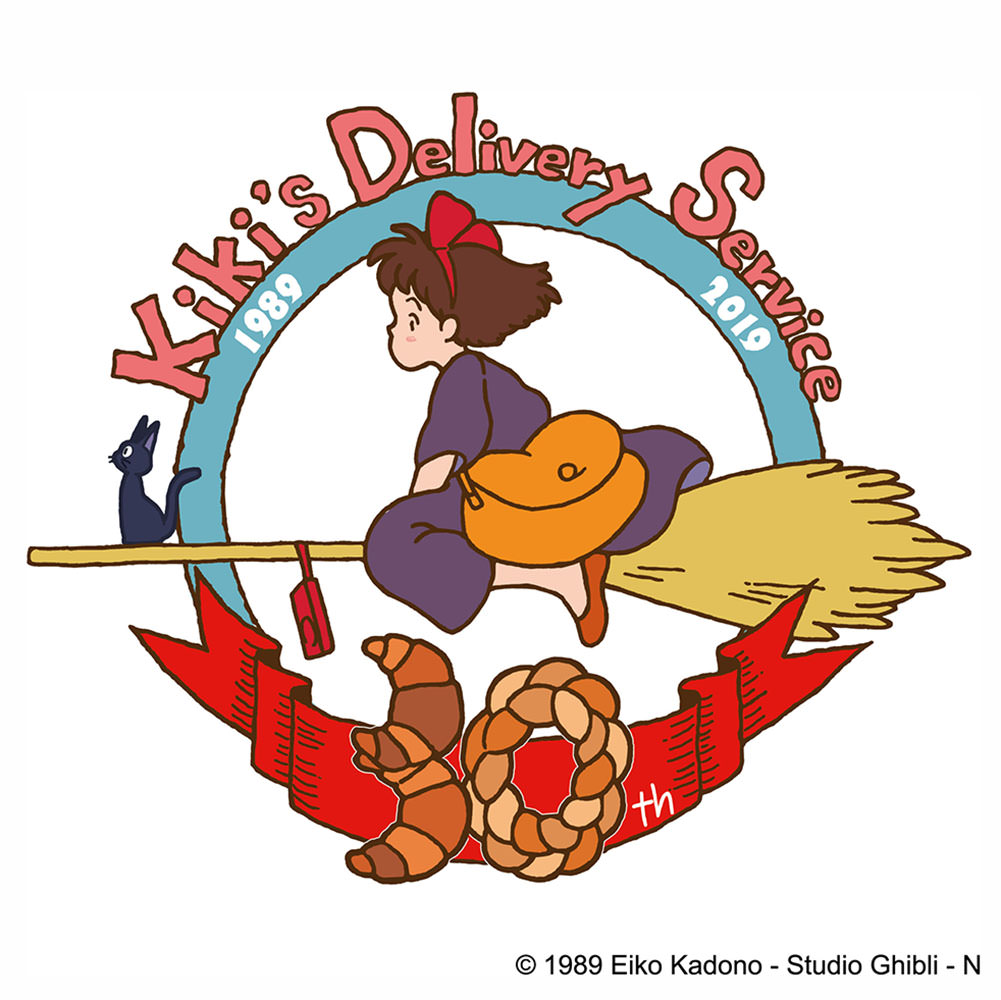 公開30周年を記念したロゴは、お父さんからもらったラジオを下げ、お母さんからもらったほうきに乗った、作中の旅立ちのシーンの「キキ」と「ジジ」をイメージ。