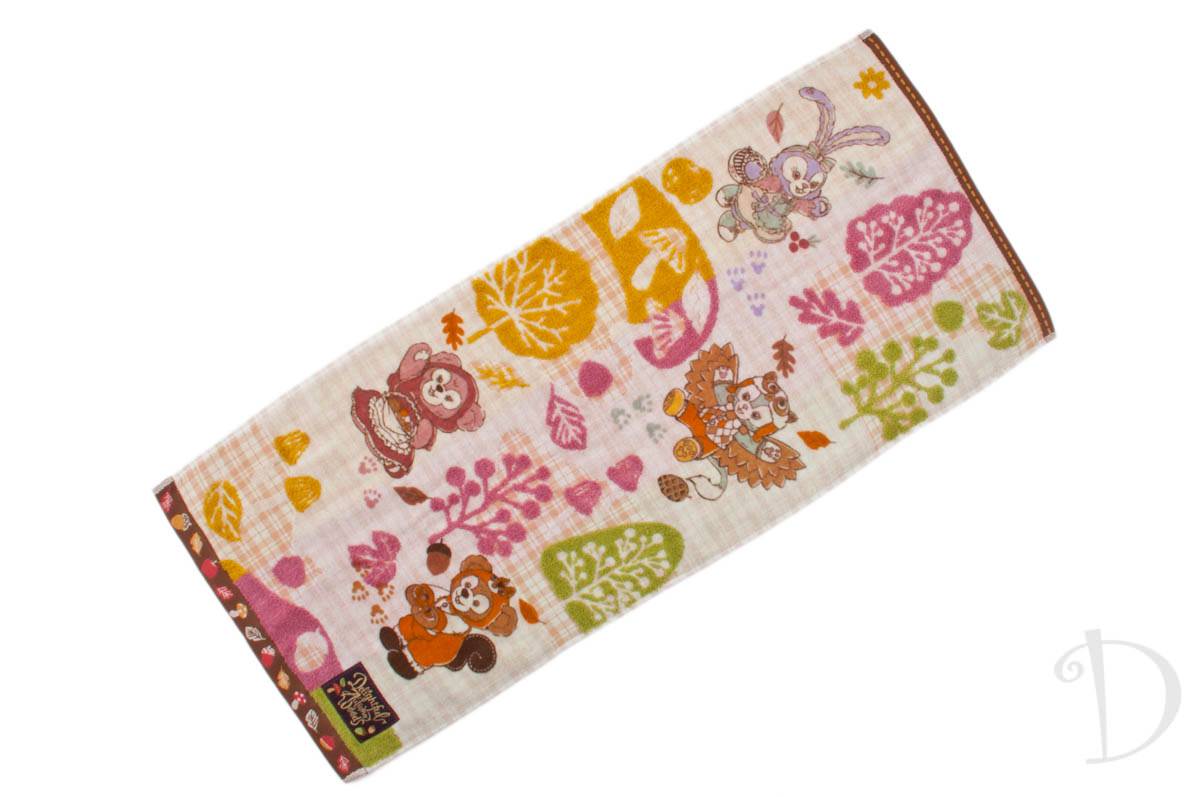 秋の森をダッフィー&フレンズが楽しく過ごしている様子を表現したフェイスタオル。