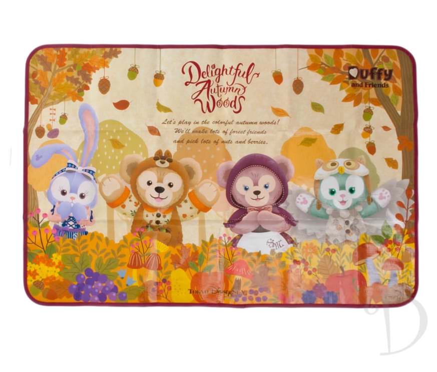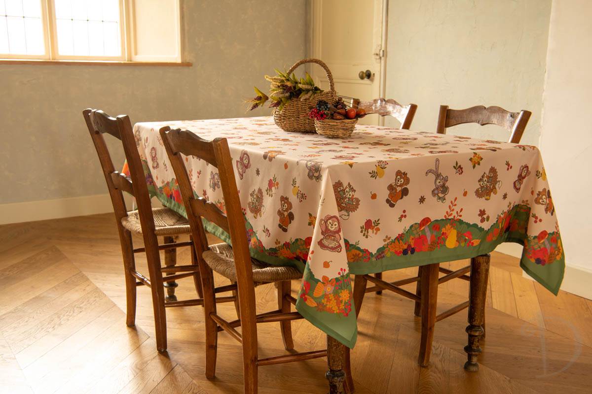秋を楽しむ「ダッフィー」「シェリーメイ」「ジェラトーニ」「ステラ・ルー」がデザインされたマルチクロス。