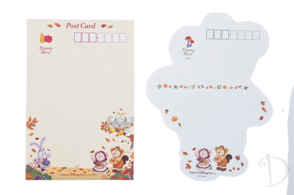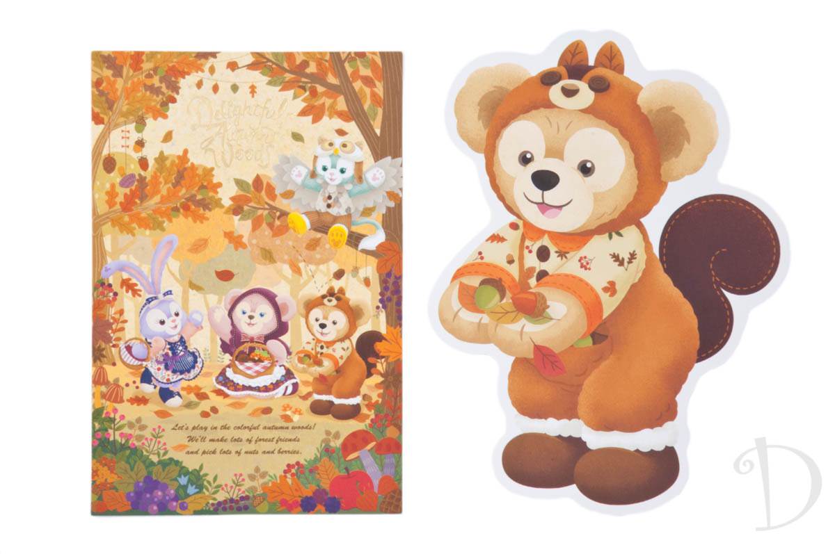 裏面は、秋色の森へ仲良く出掛けていくダッフィー&フレンズの後ろ姿をデザイン。