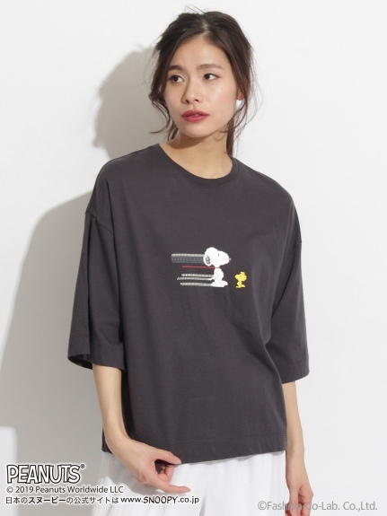 胸元にはデジタルチックな「スヌーピー」の8ビットプリントがあしらわれた、キュートな味付け。