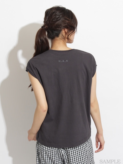 コンパクトなフレンチスリーブで、程よくカジュアルムードを抑えて女性らしく着こなせます。