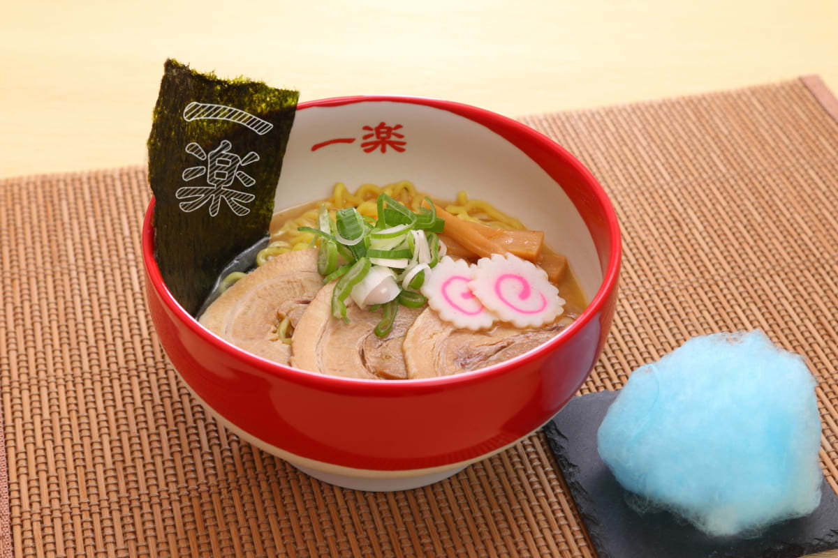 一楽らーめん NARUTO螺旋丸スペシャル(綿あめ付 ※30食限定)1,280円、