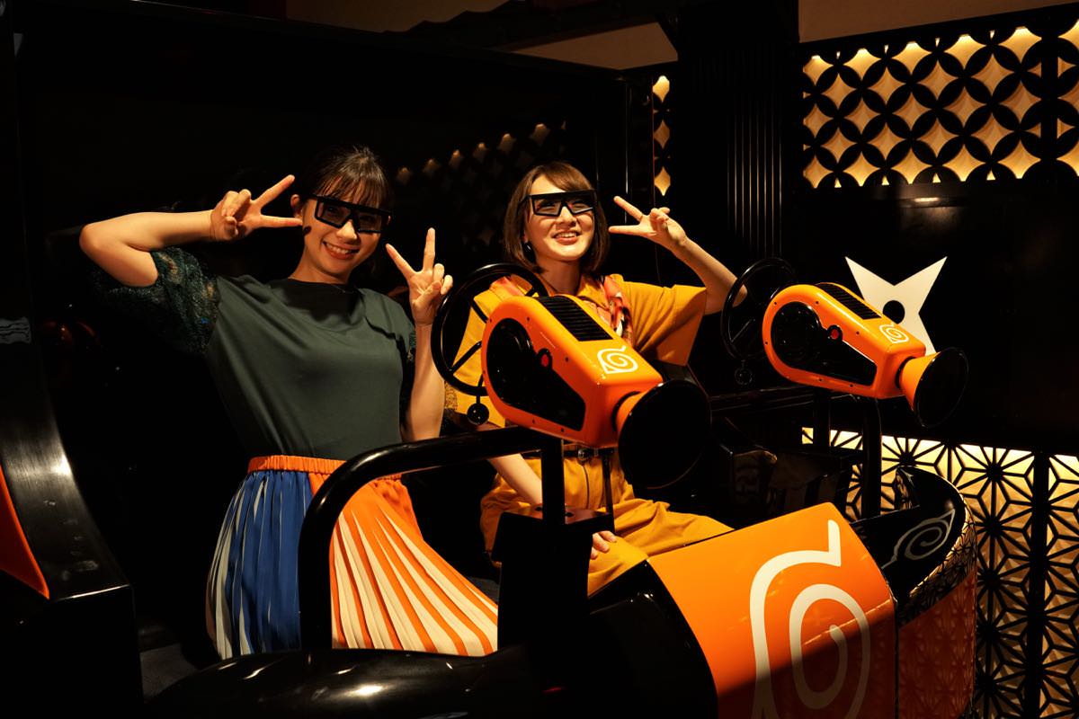 ゲストは4人乗りのライドに乗って3Dメガネをかけ、“忍術体験フェスティバル”に参加します。