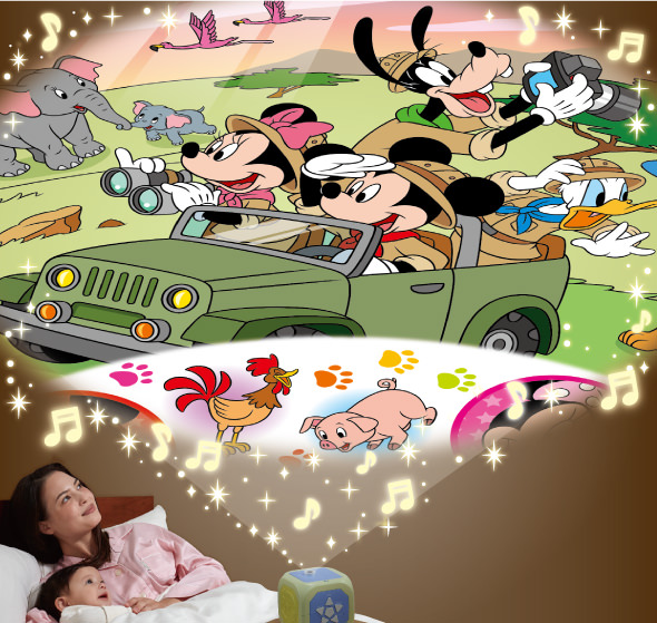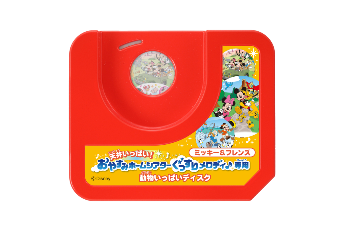 「天井いっぱい!おやすみホームシアターぐっすりメロディ ディズニーキ ャラクター」は、全国の玩具専門店、百貨店・量販店の玩具売場、雑貨店、 タカラトミー公式通販「タカラトミーモール」などにて販売中です!