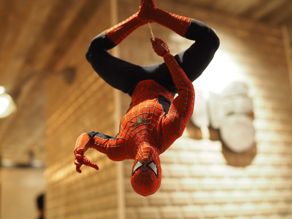 さらに注文カウンターからは「スパイダーマン」がぶら下がって、ゲストをお出迎えします。
