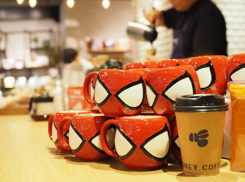 また、同店で “珈琲“ を注文された方には、数量限定で「スパイダーマン」デザインのマグカップに煎れて提供。(店内利用のみ)