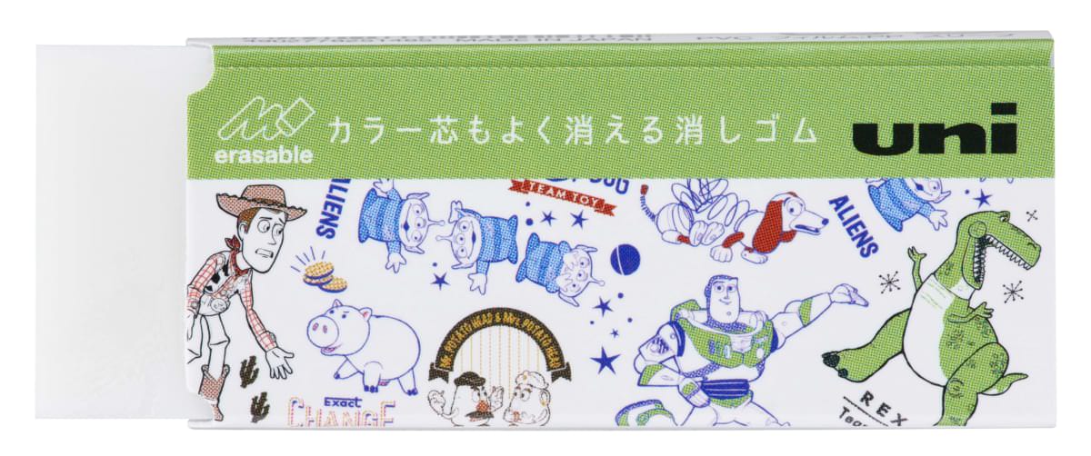 「トイ・ストーリー」シリーズに登場する人気キャラクターたちがデザインされた「ユニカラー 消しゴム/トイ・ストーリー」