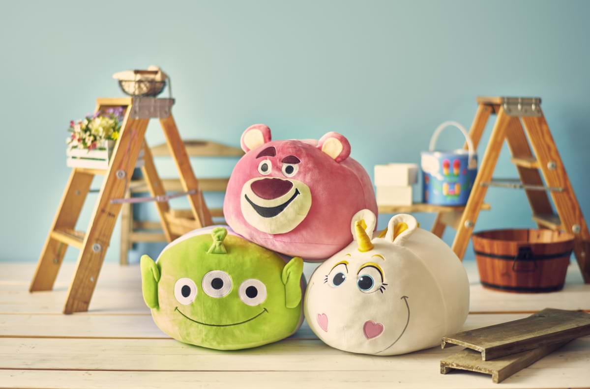 「トイ・ストーリー」シリーズの人気キャラクターである「ロッツォ」「エイリアン」「バターカップ」のドーム型クッション。