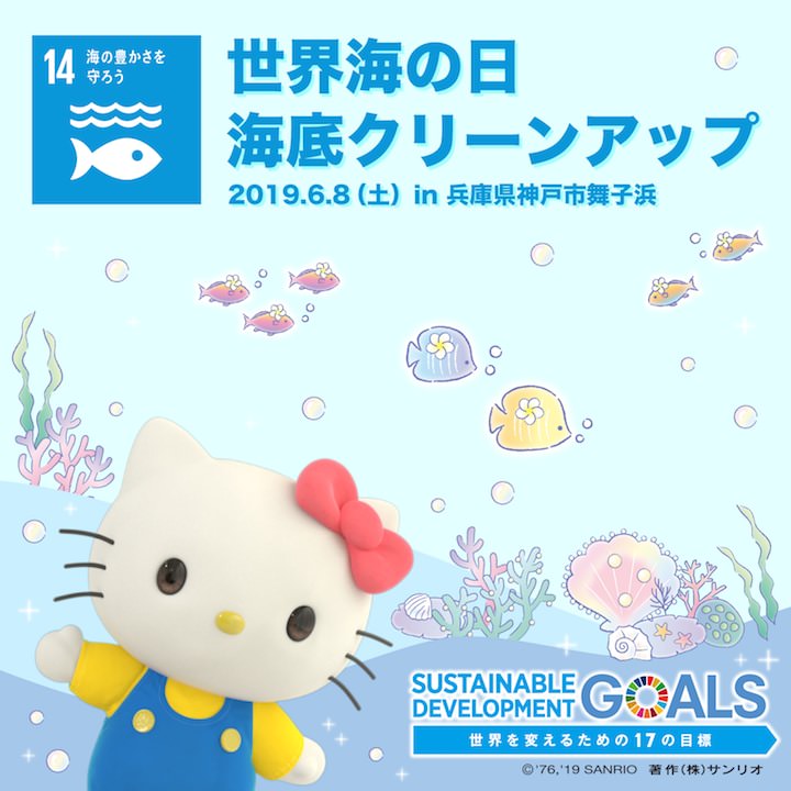YouTube 「ハローキティチャンネル」で取り組んでいるSDGs応援活動の一環として、GOAL14『海の豊かさを守ろう』をテーマに、ビーチと海底のゴミ拾い活動が2019年6月8日(土)の「世界海の日」に実施されました!