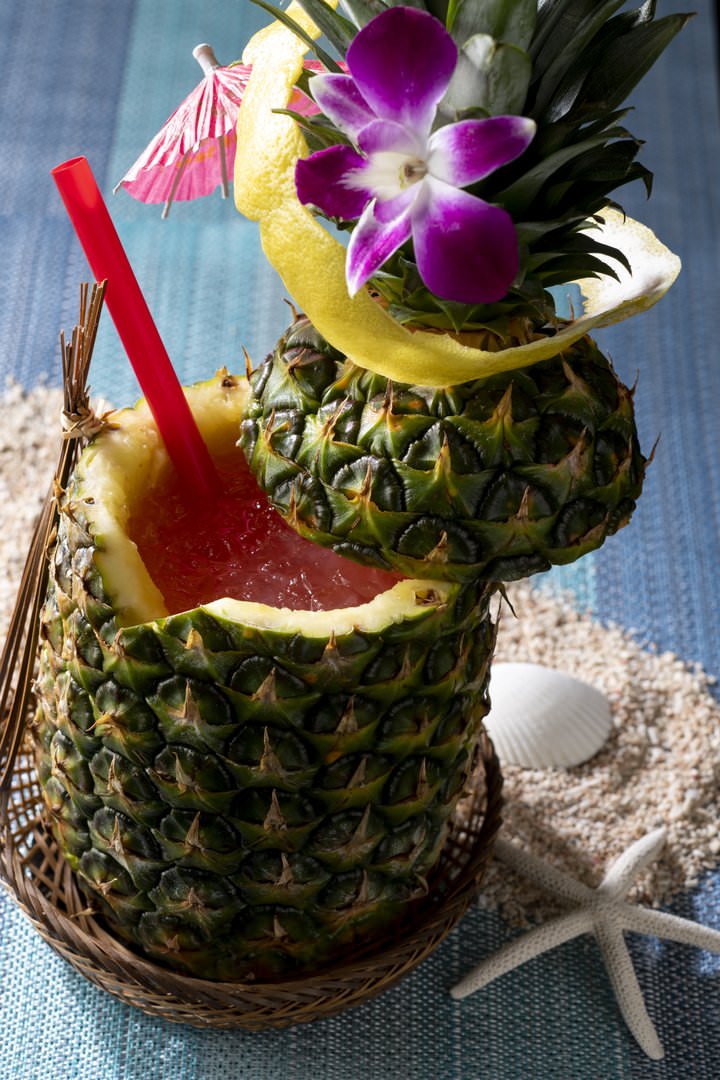 くり抜いた甘くてジューシーなパイナップルの果肉はミキサーにかけ、すべてカクテルに。