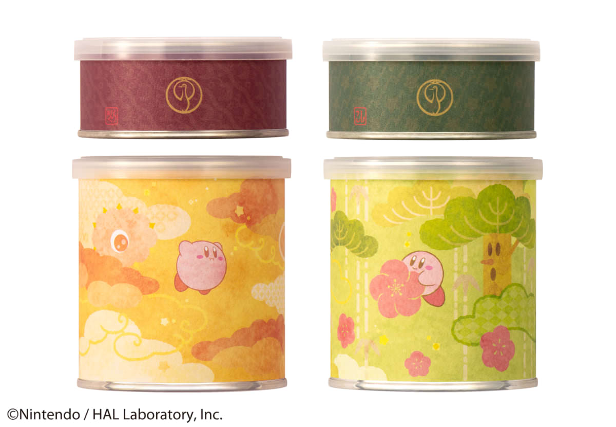 最中種の缶デザインは雲のなかをただようカービィと、松竹梅をモチーフにしたデザインの2種が詰め合わせられています☆