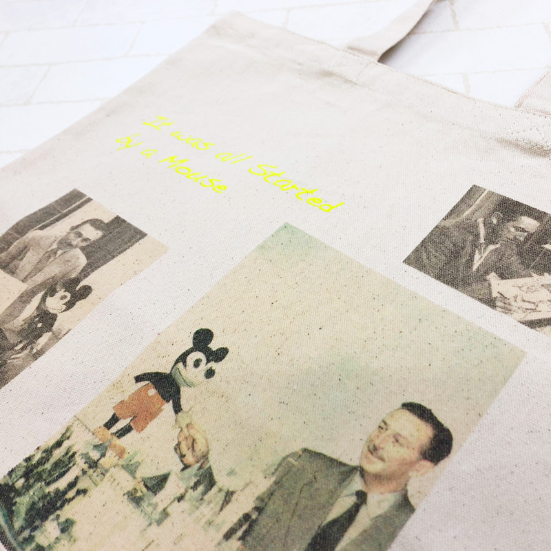 ウォルト・ディズニーと「ミッキーマウス」のレトロな写真がプリントされています☆