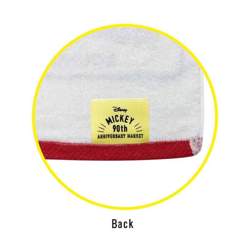 袖には「Disney MICKEY 90th ANNIVERSARY MARKET」のロゴが入った黄色いタグが、バックスタイルはシンプルなデザインになっています。