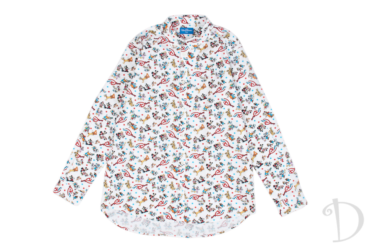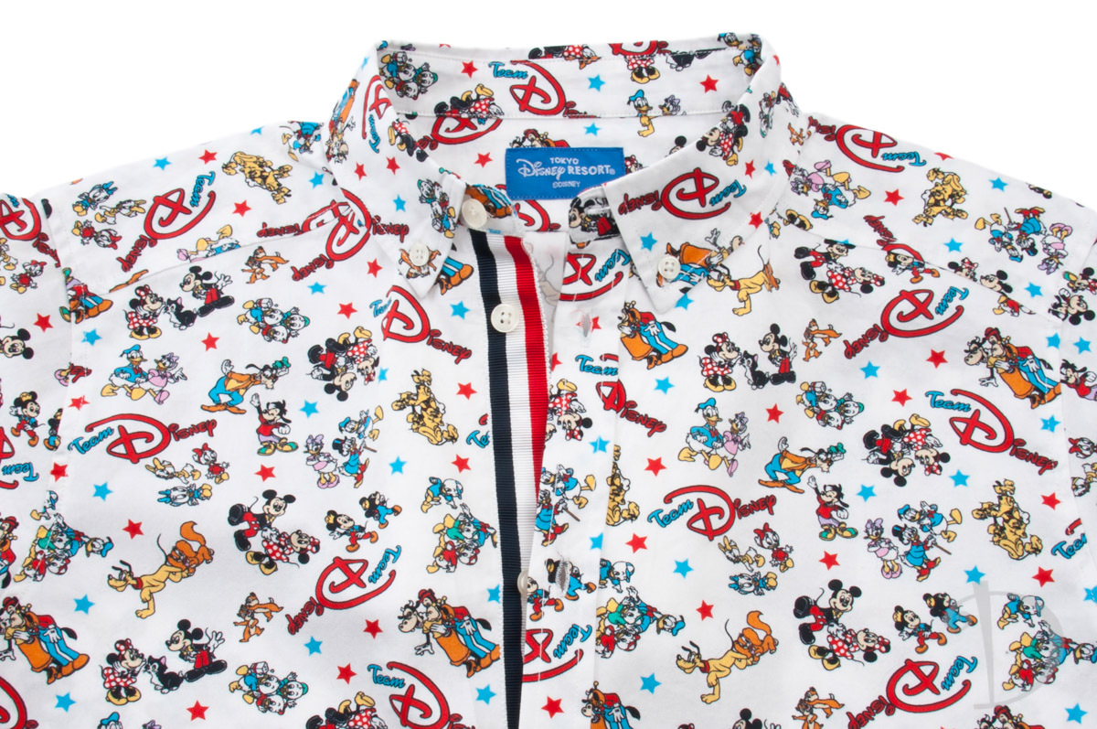 カラフルな総柄が目をひく「チーム Disney!」のシャツ。