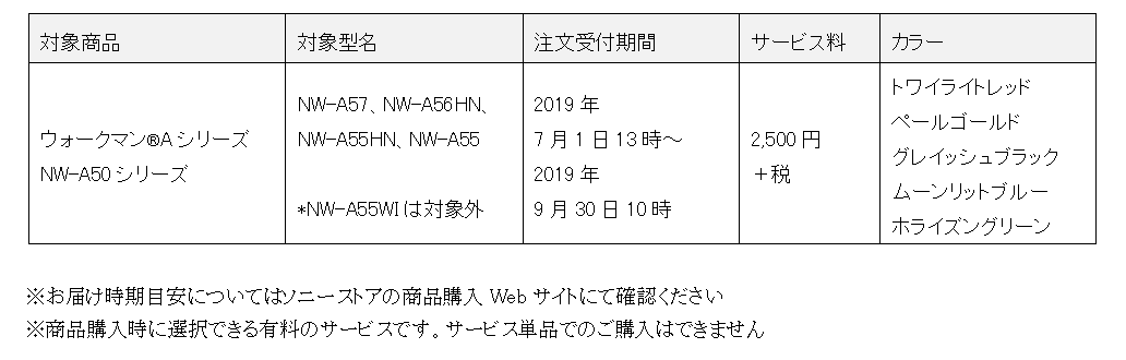 ソニーでは、1979年7月1日の「ウォークマン(R)」一号機発売から40周年を記念した特別企画の刻印サービスを期間限定、数量限定で開始。
