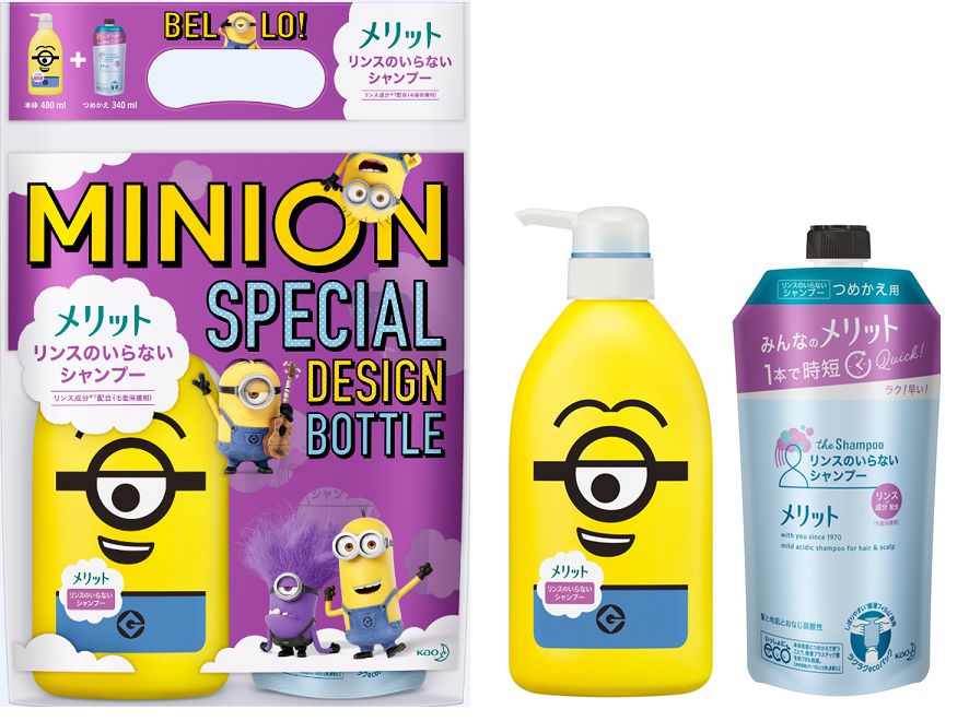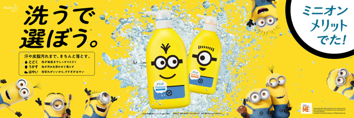 花王より発売されているヘアケアシリーズ「メリット」に『怪盗グルー』シリーズの人気キャラクター「ミニオン」が登場。