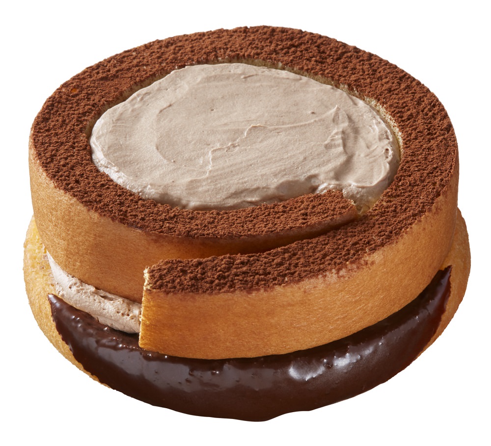 チョコレートをコーティングしたふわっとかるいドーナツと、しっとりロールケーキ2層の生地に、北海道産牛乳入りのミルククリームを混ぜ込んだガナッシュチョコクリームをたっぷり絞ってあります。