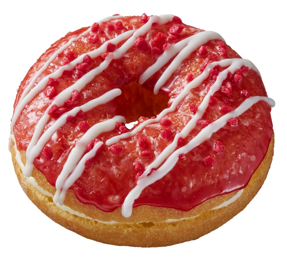 甘酸っぱいいちご風味のグレーズと、ホワイトチョコの線が華やかな印象のドーナツです。