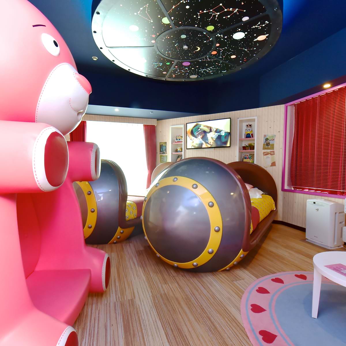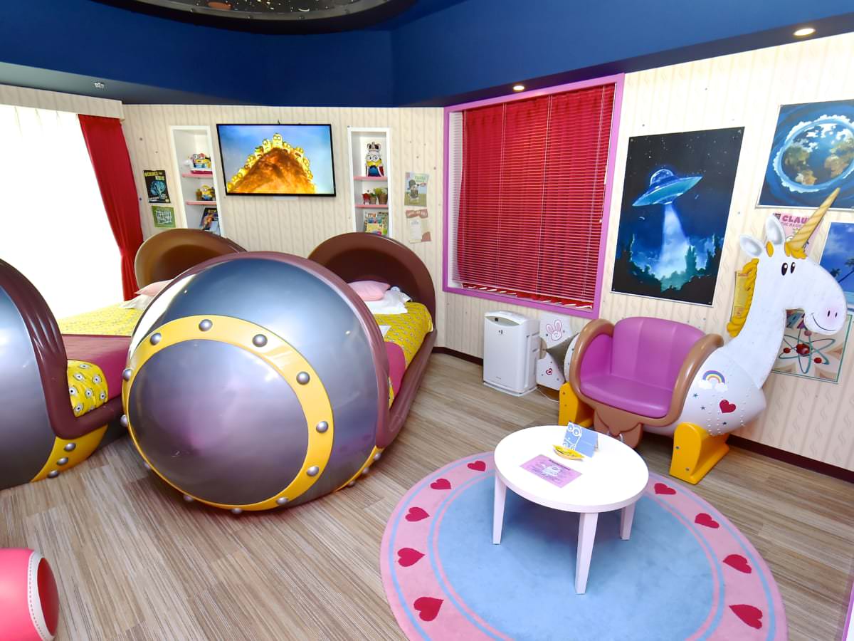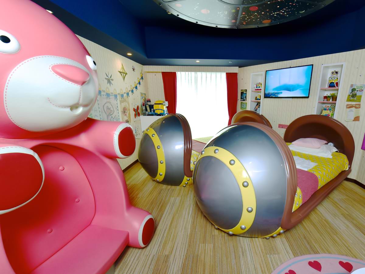 ベッドは、ミニオンルームでも大好評のミサイル型ベッドに加え、