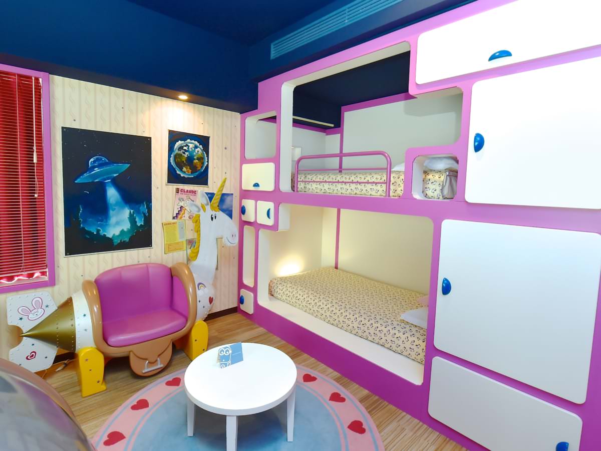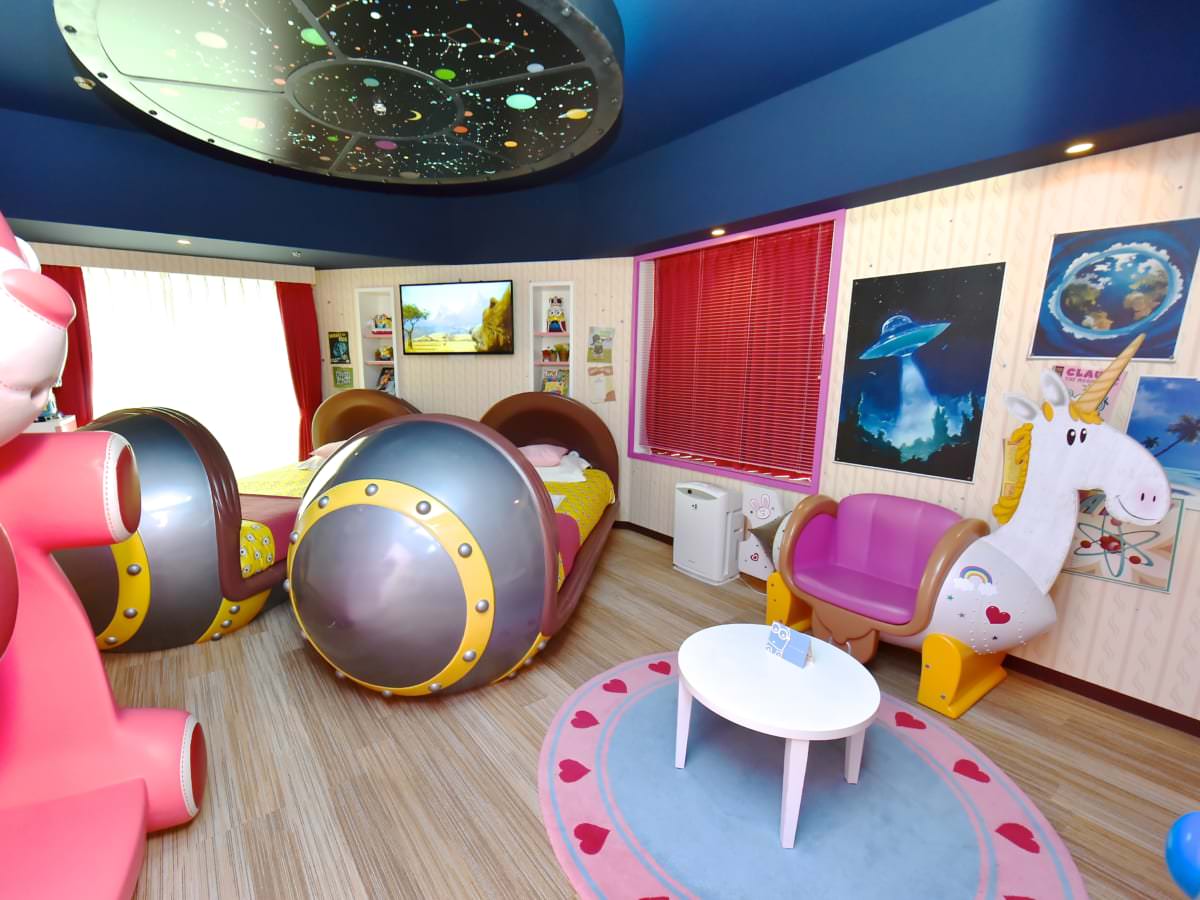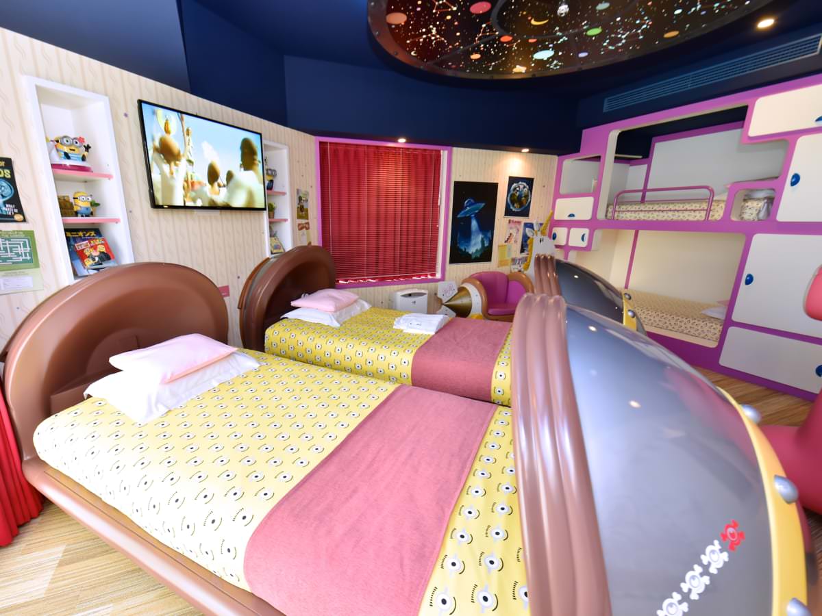 ベッドは、ミニオンルームでも大好評のミサイル型ベッドに加え、