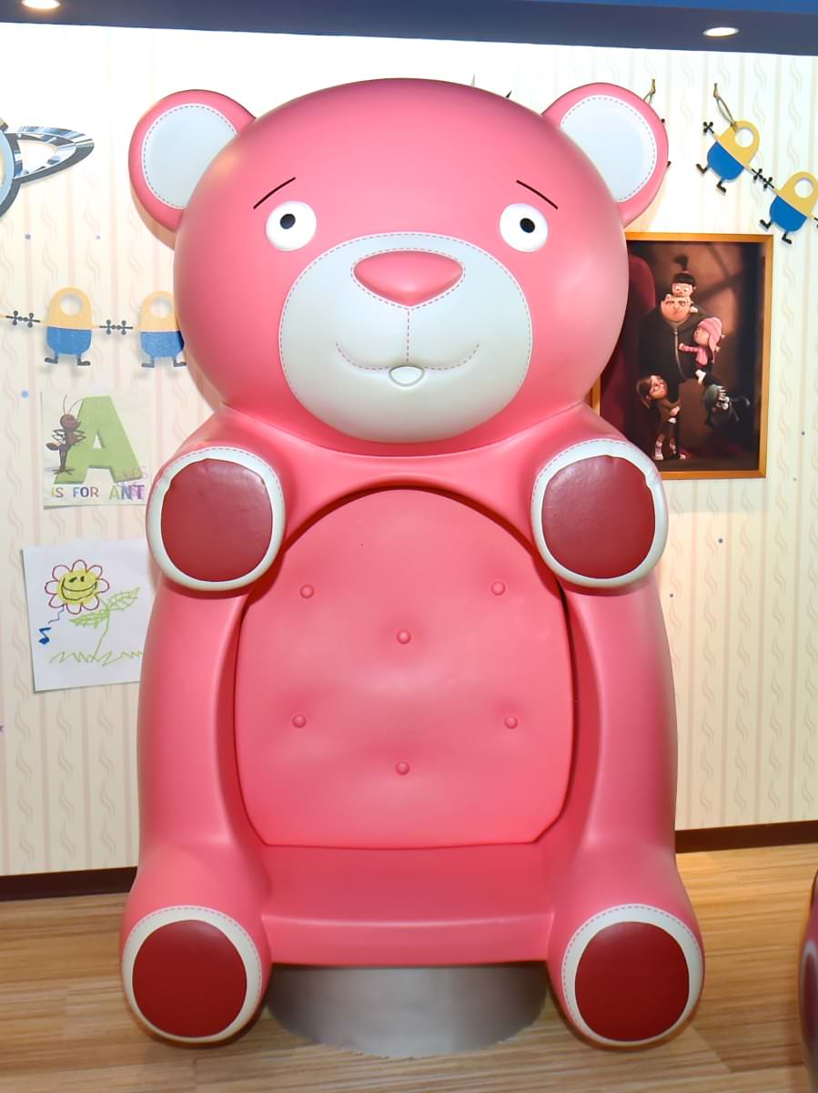 中でもひときわ目をひくのは、高さ約2mを誇る、巨大なピンクのクマのチェア。
