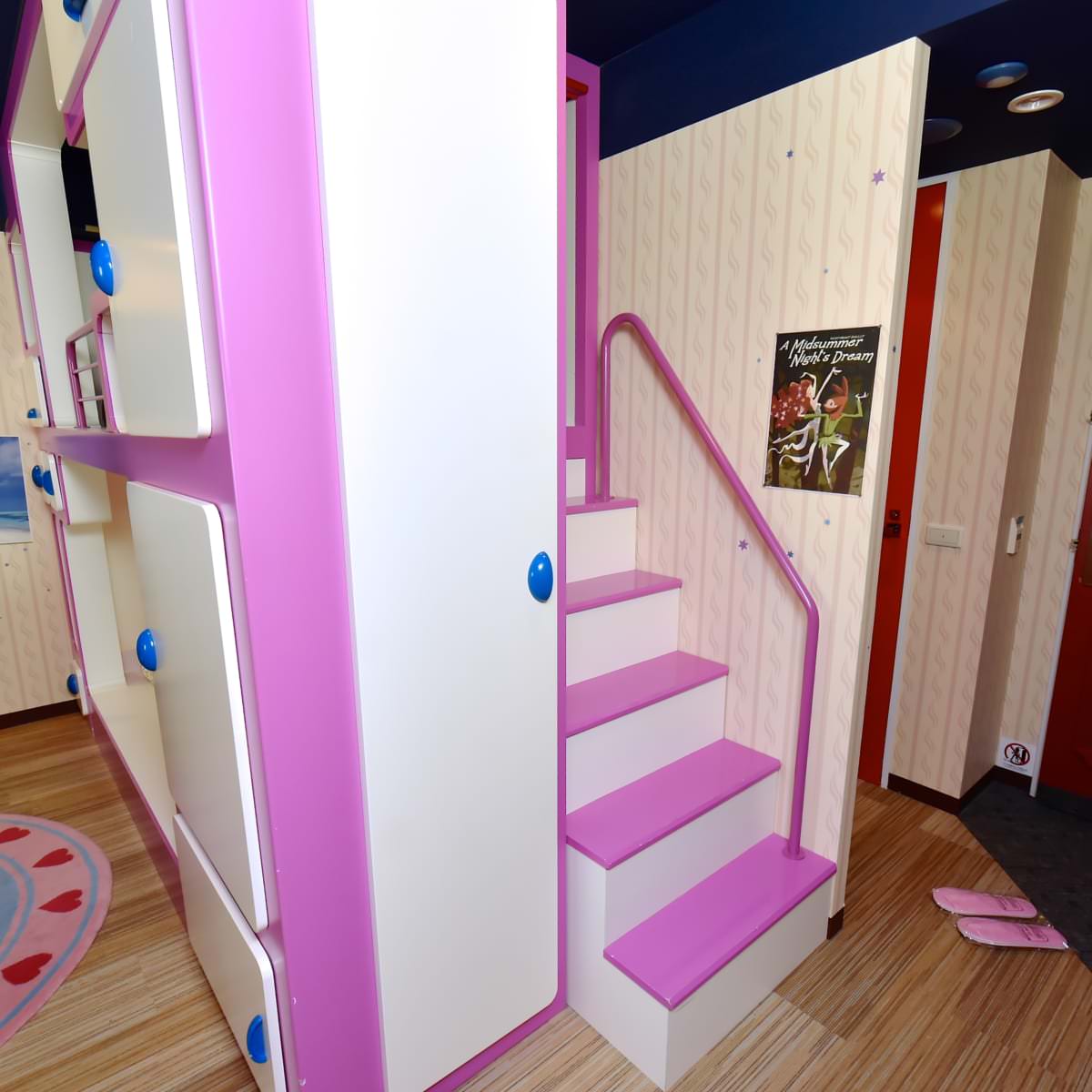 映画に登場する、3姉妹のお部屋にある飾り棚をイメージした2段ベッドも用意されています。