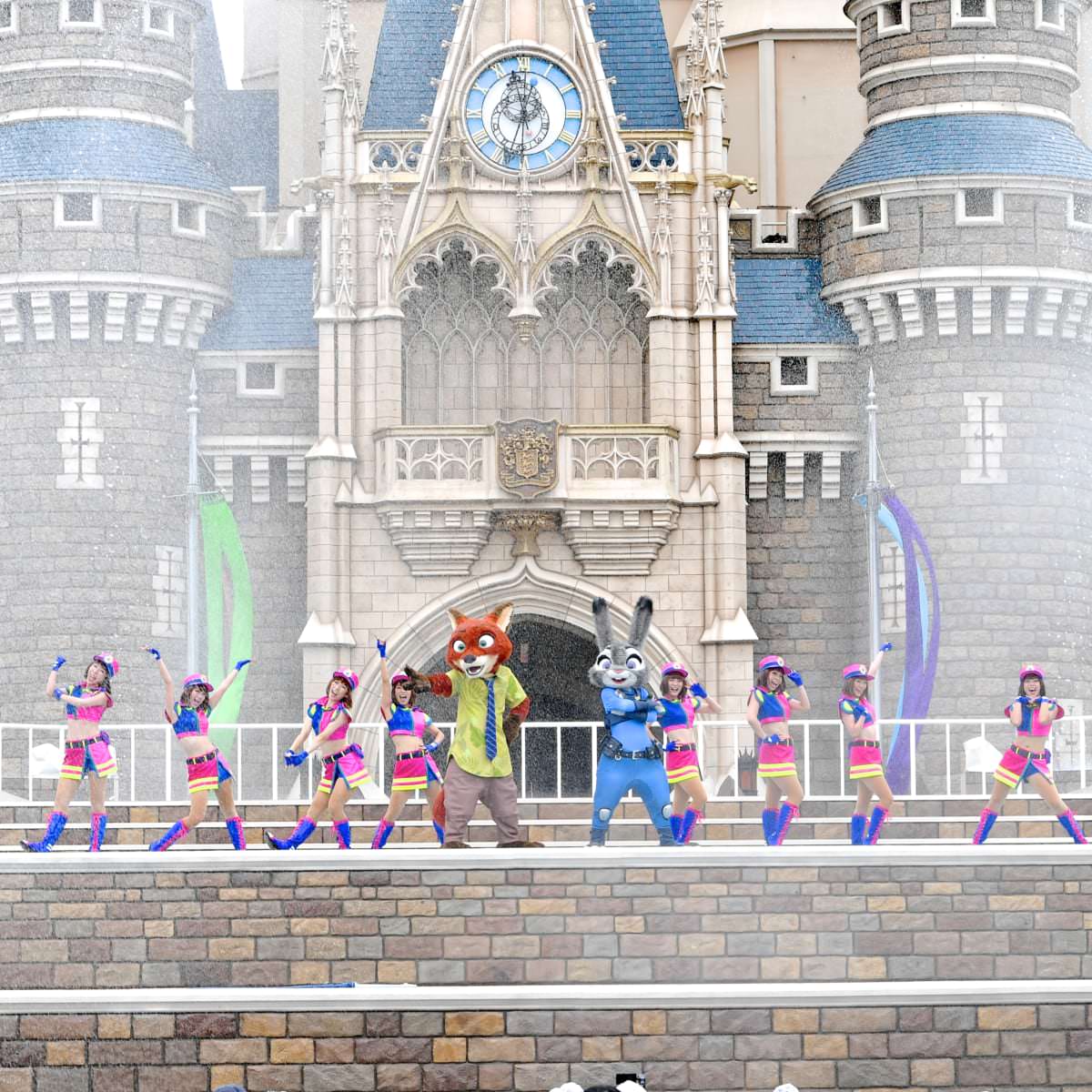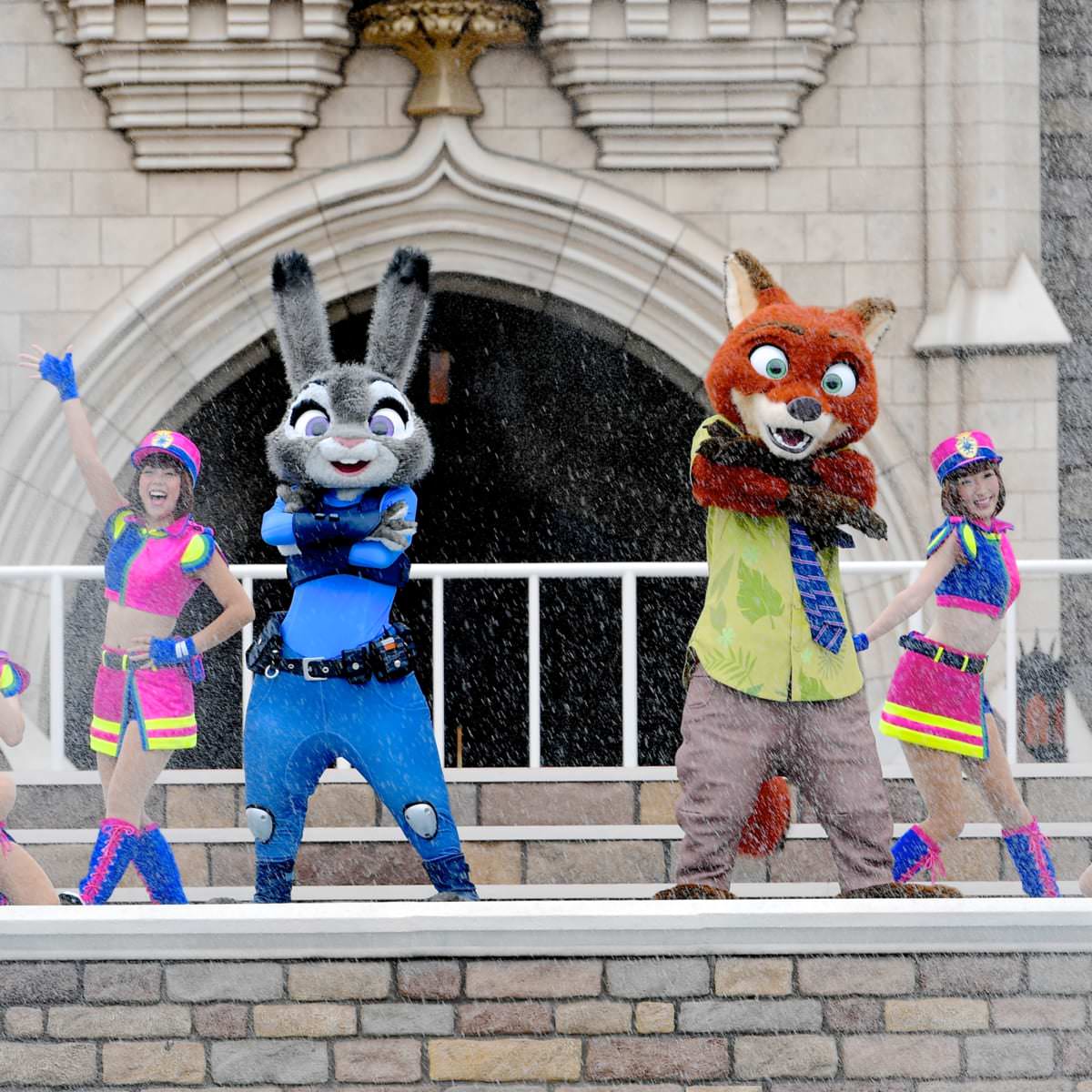 ディズニー映画『ズートピア』の主人公「ジュディ・ホップス」と「ニック・ワイルド」が出演する散水ショーです!