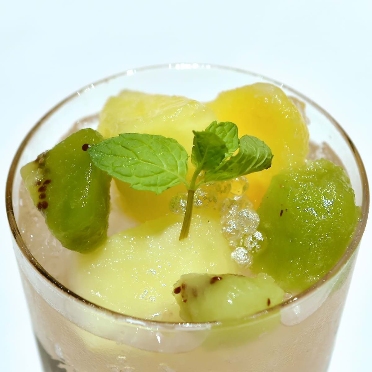 マンゴージュース、グァバジュース、パッションフルーツシロップ、 レモンジュースなど爽やかな素材を使用し、ジンジャーエールをくわえて炭酸の爽快感をプラス。