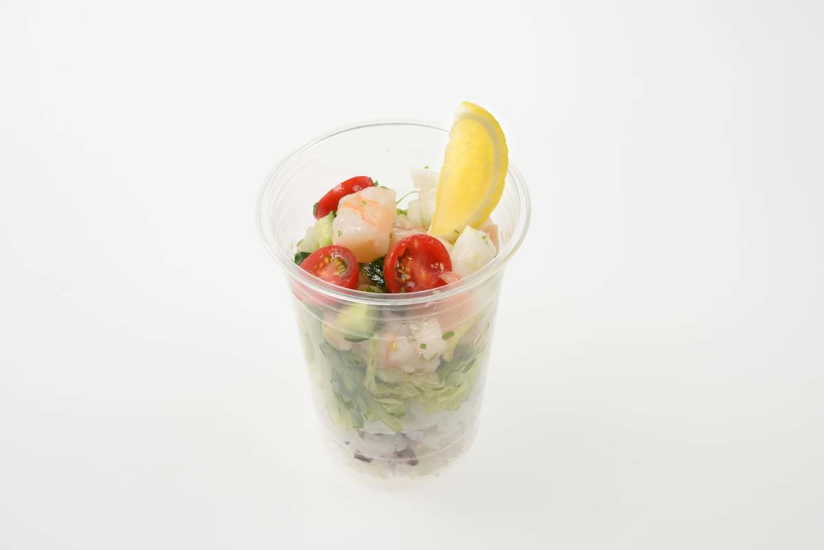雑穀米にシュリンプやミニトマトなどのお野菜をのせた、サラダ感覚で楽しめるヘルシーメニューです。