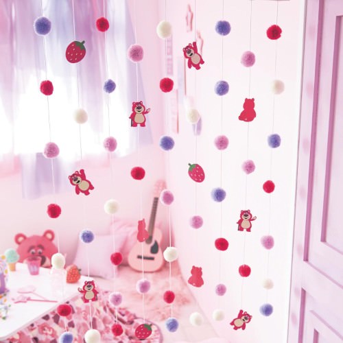 パープルやピンクのぽんぽんがお部屋の可愛いアクセントになります!